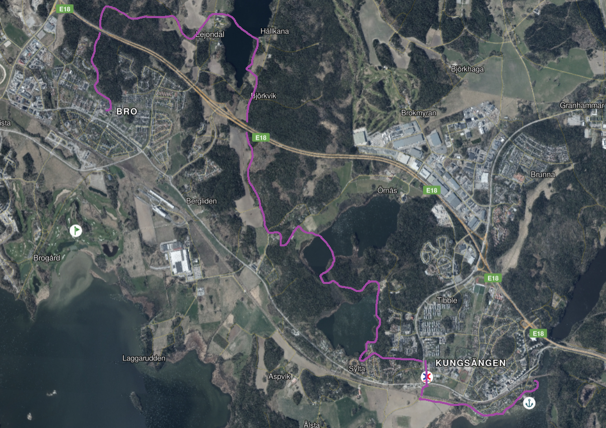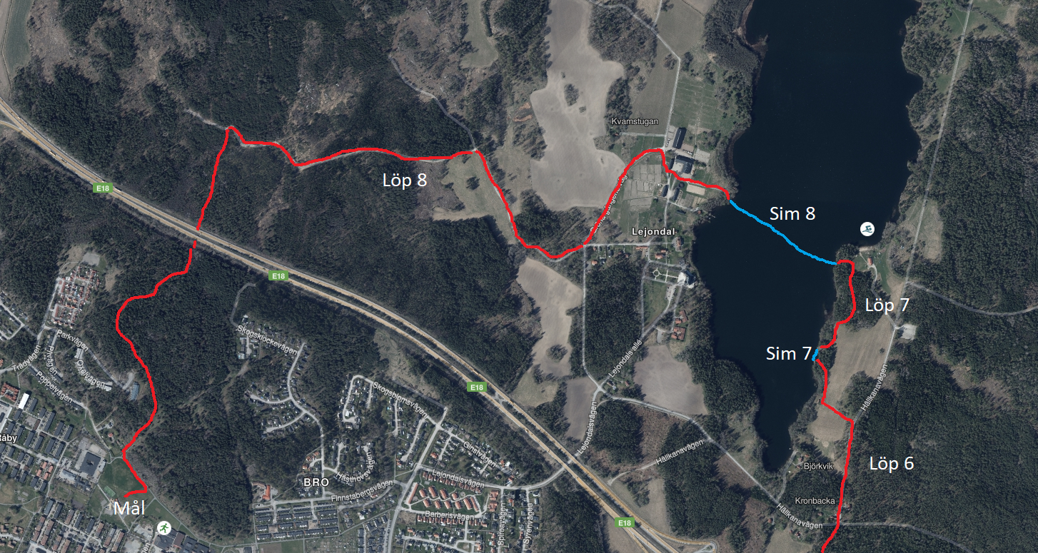 Från målgång till Simhallen samt till Pendeltåget i Bro 200m till simhallen, 700m till Pendeltåg.
